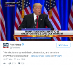 He continued to pound Hillary on her foreign policy missteps saying “ISIS threatens us today because of the decisions Hillary Clinton has made along with President Obama. In short, Hillary Clinton’s tryout for the presidency has produced one deadly foreign policy disaster after another.”